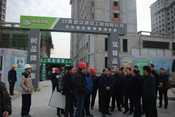 2016年12月7日上午,天水市副市長(zhǎng)何東帶領(lǐng)市直有關(guān)部門,來甘肅懋達(dá)建設(shè)工程有限公司承建的天水成紀(jì)新家園棚戶區(qū)改造項(xiàng)目一期工程五標(biāo)段檢查指導(dǎo)工作。