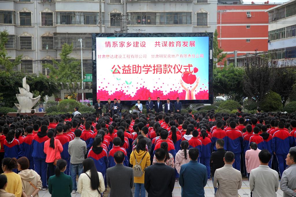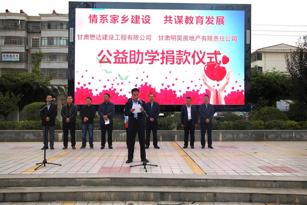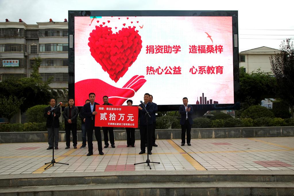 9月26日,“情系家鄉(xiāng)建設(shè) 共謀教育發(fā)展”公益助學(xué)捐款儀式在徽縣四中隆重舉行?h委、縣政府、縣教育局有關(guān)領(lǐng)導(dǎo)及四中全體師生參加捐款儀式,公司總經(jīng)理封曉成、副總經(jīng)理尹向宏出席捐款儀式。