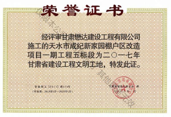 天水市成紀(jì)新家園棚戶區(qū)改造項(xiàng)目一期工程五標(biāo)段--2017年度甘肅省建設(shè)工程文明工地