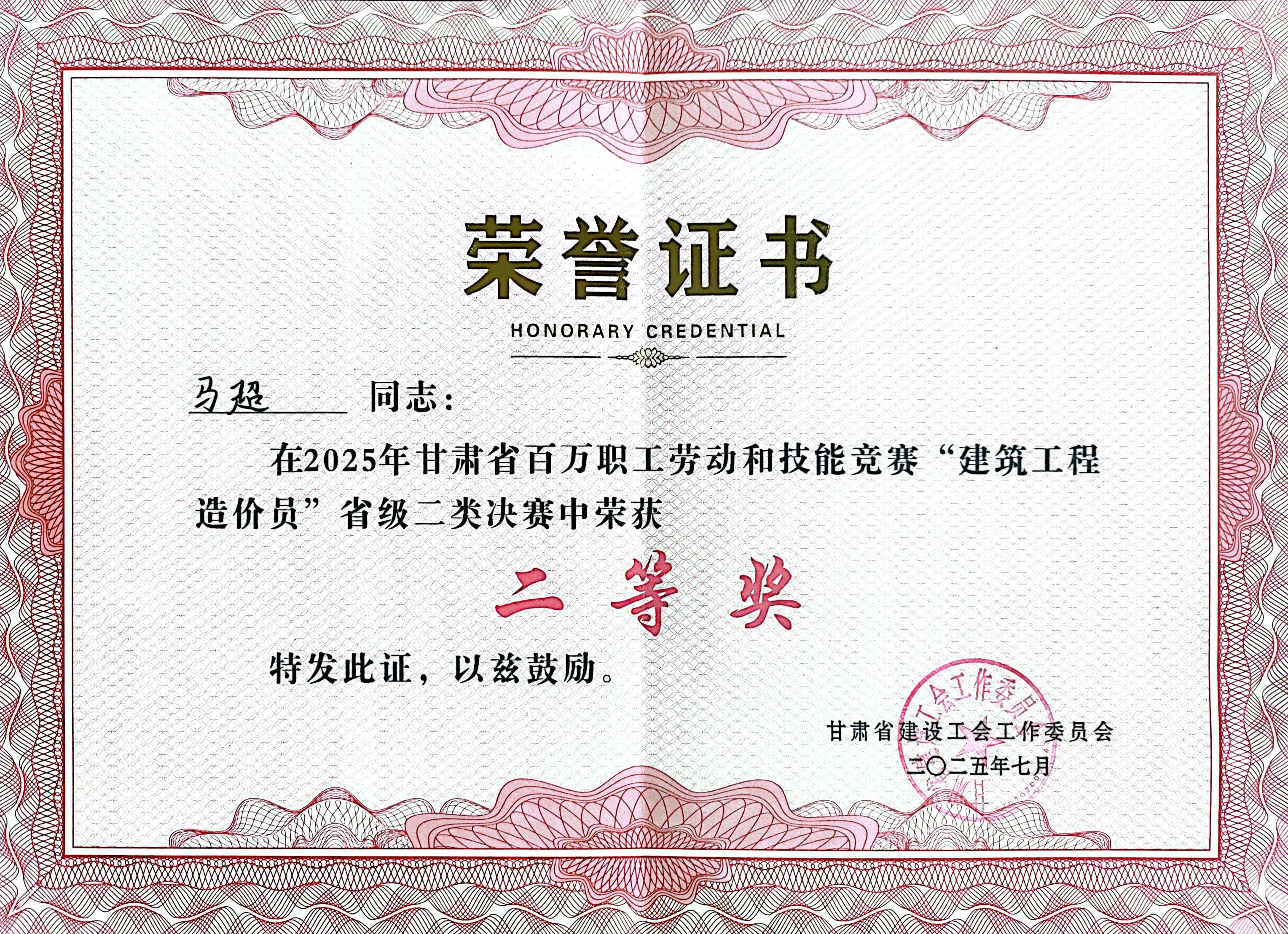 賽事本著“以賽促學、以賽促練、以賽促建”的宗旨,為建設行業(yè)相關專業(yè)職工交流展示、切磋提升搭建了優(yōu)質(zhì)平臺,展現(xiàn)新時代建設行業(yè)技能人才的專業(yè)素養(yǎng)與職業(yè)風采,有效促進了建設行業(yè)企業(yè)人才隊伍建設。此次建筑工程造價員分建筑、安裝專業(yè),考核專業(yè)基礎知識與工程量清單、投標報價等實操內(nèi)容,在工程量測算、招投標報價方面精打細算。經(jīng)過激烈角逐,公司造價員馬超憑借扎實的專業(yè)功底和出色的現(xiàn)場發(fā)揮,從全省148名行業(yè)精英中脫穎而出,榮獲競賽二等獎。